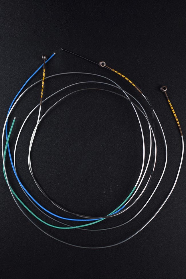 為了保證聲音,此弦A弦為鋁皮纏弦,看上去直徑較粗,也是最容易磨損的琴弦,E弦聲音比較敏感,但都不及鋼弦耐用。