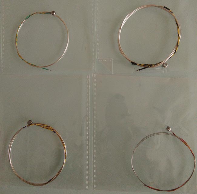 為了保證聲音,此弦A弦為鋁皮纏弦,看上去直徑較粗,也是最容易磨損的琴弦,E弦聲音比較敏感,但都不及鋼弦耐用。