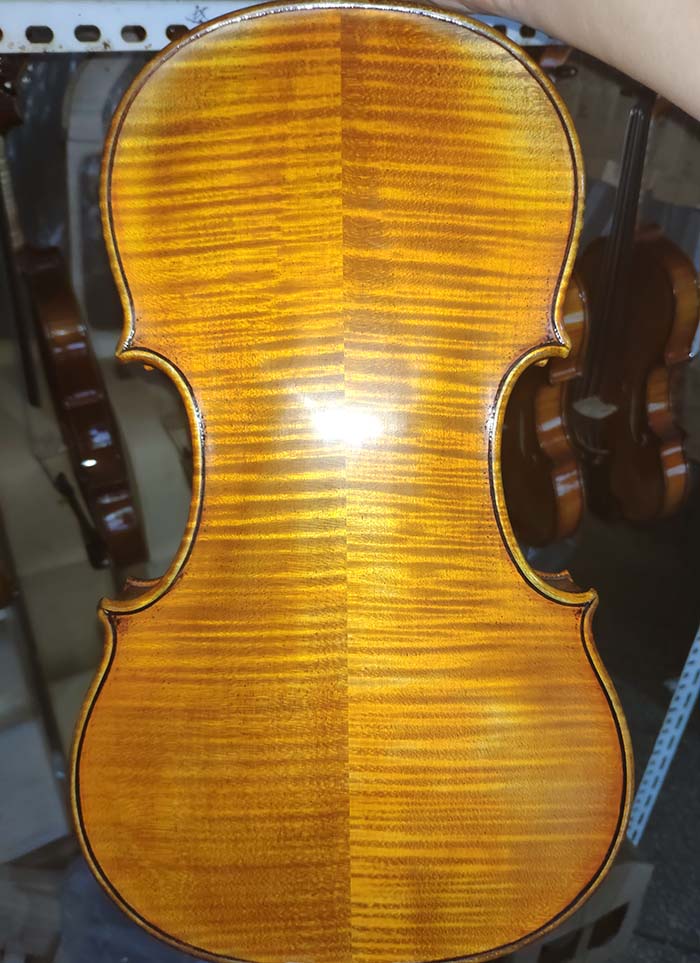 描述:這一批琴無論是從外形還是音質方面來說,都是非常棒的,尤其是共振,更是技高一籌,好像是自帶音響一箱,非常的響亮。這把琴的油漆風格個人非常的喜歡,仿就工藝也做的非常好,看上去像是很有內涵很有年份的琴。總之,這把琴無論是專業演奏,還是當作進階琴來用,都非常的合算,性價比高。