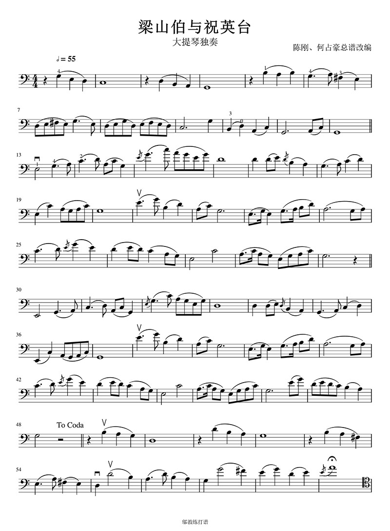 本片《梁祝》大提琴獨奏曲的譜子幾乎是從原版上原汁原味的摘錄下來的,并沒有改變過大,用大提琴拉起來依然是非常的悠揚動聽,希望大家能夠好好的練習(xí)。